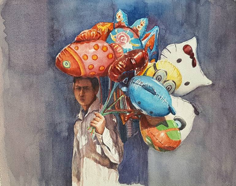 Traditional habits of selling toys and balloons in the antique market in the city of Sidon in Lebanon, traditions from childhood to the present day, but the sadness and exclusiveness of the seller makes life tired in order to make others happy