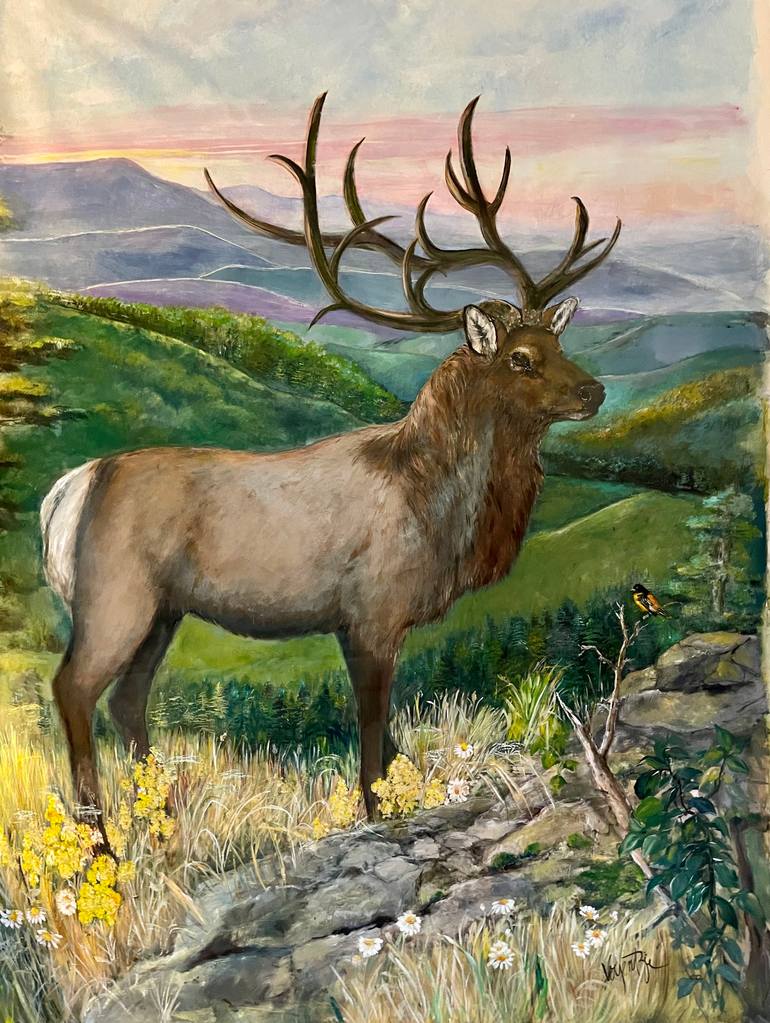 This was a commission for the High Country Charitable Foundation in Banner Elk, North Carolina. It is inspired by the gorgeous mountain views and landscape of North Carolina. It is hanging in the High Country Charitable Foundation Party Event Center. in the city. I love to paint animals and especi...