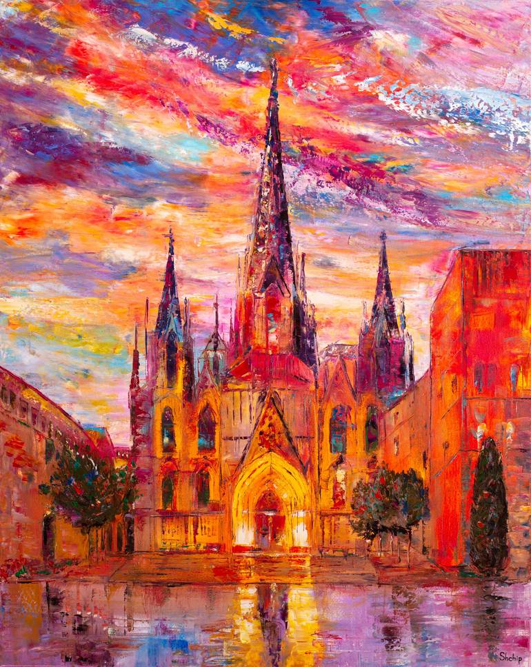 The beauty of Barcelona is full of architectural wonders. One of the most important cultural monuments is its Cathedral or Catedral de la Santa Cruz y Santa Eulalia de Barcelona. Oil, canvas, varnished.