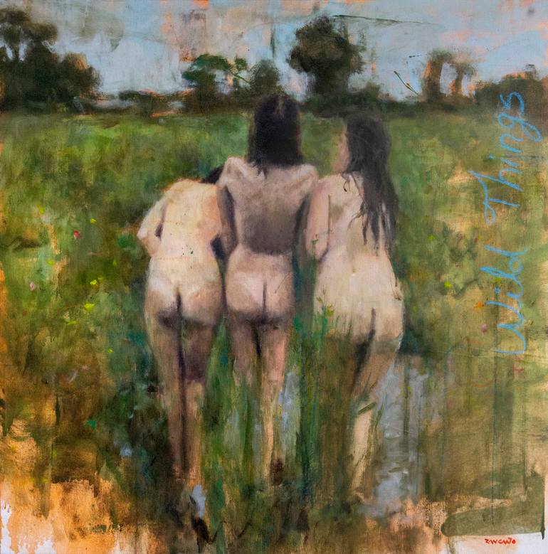 Bare Truths or Wild Things is a contemporary painting by emerging artist Carlos Antonio Rancaño. Through a mix of expressionism and realism I tried to capture the emotional context of this lovely photo I referenced. I felt free and pure when I first saw the photo and emulated that with gestural bru...