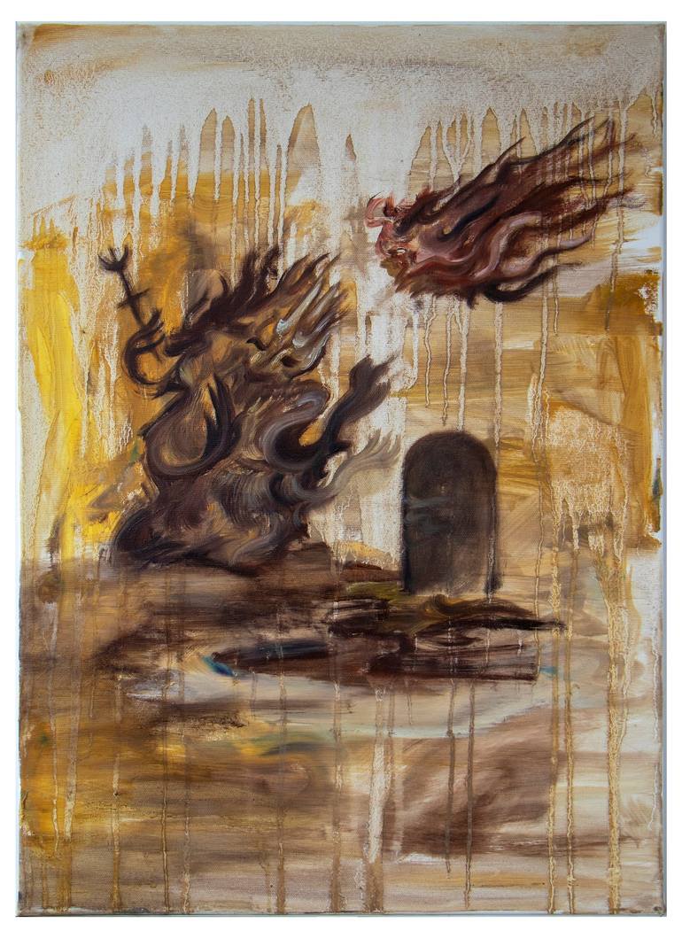 I am looking to create dialogue around the themes of gathering and dissolution. Using elements of the outside world to reflect inner perceptions. I am appropriating the hungry ghost (budhist concept)mythology in order to espress either personal or societal dynamics in our continous search. Landscapes reflecting inner realities and my views on the world. Using elemnts such as water to represent mainly life and my response observing it. Background of a mountain as a symbol of the spiritual seeker;Outside point of balance(Jesus Christ,Guru,path of the master.) Main spheres in landscapes to represent gross(mountain), life as water and sky as the most sublte aspect(holy spirit/grace) that is usually portrait as raining or going down as a methaphor of the above coming to us. My work is driven by a desire to explore the mysteries and complexities of the human experience, and to create work that is meaningful and thought-provoking for the viewer. My interest in spiritual and philosophical subjects, and the use of symbolism and metaphor to convey deeper truths and insights, are key elements of my artistic vision. Instagram b.2000