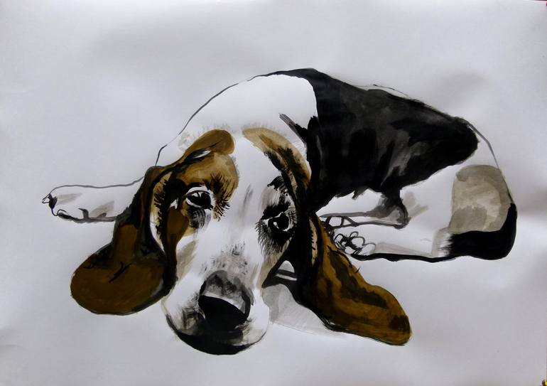 "Basset hound " Acrylic on paper 60X84 cm By Soso Kumsiashvili 2021