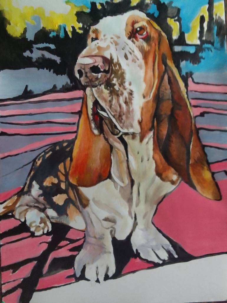 Bassethound Acrylic on paper 60 x 84 cm By Soso Kumsiashvili 2023