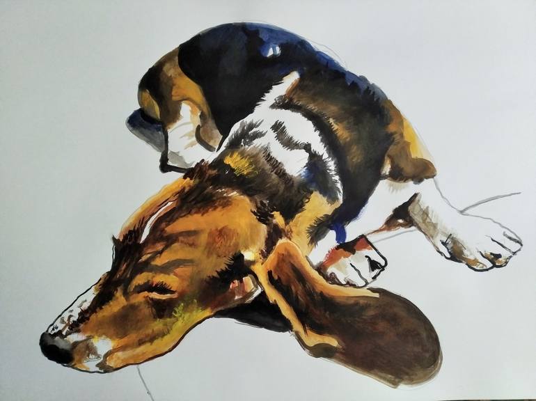 "Basset Hound" Acrylic on paper 60X84 cm By Soso Kumsiashvili 2022