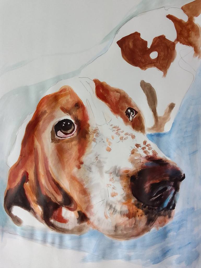Bassethound Acrylic on paper 84X60 cm Soso Kumsiashvili 2022