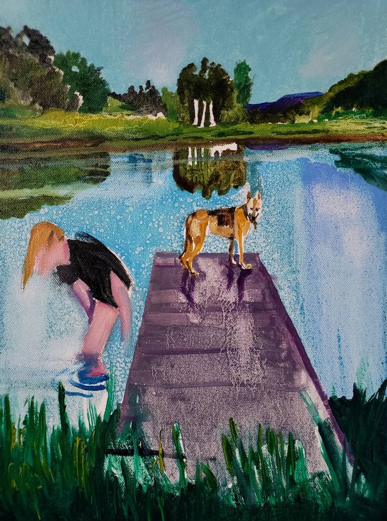 In the bather series I'm investigating ways to generate fiction and ghosts through depiction of figures communing with water. The goal is to sensate that feeling of youth we have when we swim, float, wade or contemplate water. I want these characters to be spirited away in pools of the mercurial pas...