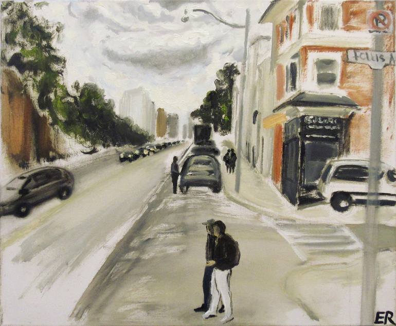 I am using different media for my artwork - oil on canvas, watercolour, pastel and original print. During recent five years I mostly painting. Currently my favorite theme is cityscapes. I life-paint them on the streets of downtown Toronto and sometimes complete work in my studio. Hunting for an object in city jungle is an exciting and fascinating process for me. The goal is to get feeling of resonance with the environment, with the pulse of the city. I can’t and don’t want to work with photographs. I have to be inside. I have to see how rapidly everything in the city (people, cars, clouds and light) moves, changes, disappears. I reflect this quickness in my works by sketchy appearance, incompleteness of my canvases. -------------------------------------------------------------------- Elena Roginsky captures a moment in time through a process of observation and introspection. Her works are emotional and painterly, and rooted in the historical tradition of painting. They are created on location as has been done throughout the history of painting. Roginsky loads blank canvases and paints into her van and goes for a drive. When she feels inspired, she pulls over at the side of the road, places a blank canvas on the steering wheel, her easel, and begins to paint. Elements like the weather and the time of day lie heavily in her paintings. Spontaneity and nervousness seem to spill from the surface of each painting. The only time related obstacle to the completion of each canvas is when the police want her to move her vehicle or threaten Elena with a parking ticket. There is no returning to the studio with photographs to adjust or change the final painting. They flow in the moment in which they are painted, a thought in the process of becoming, a simple conscious effort to capture a moment in time. When I asked the artist about her preferred time of day and weather for painting Roginsky stated that “I like rain, snow because they make softness of contours and make air visible. I like summer as well but I don't like cloudless sky. It is as hard to explain why as explain why not every gentleman prefers blonds.” Her favourite locations for painting are busy city streets. Born in Russia, Elena grew up in Moscow and loves the big city feeling. She believes that her childhood experiences are the inspiration for her subject matter. She left Russia to escape during "perestroika" in 1991 and moved to Jerusalem, Israel.