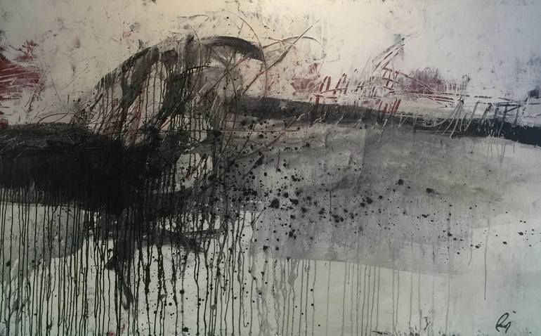 An explosion of black, furious strokes of paint that spatter and drip call to mind the warrior's cry before battle.