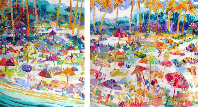 Diptych measuring 24 x 54. Beach Brellies shows all the energy, activity and stuff that we bring to the beach on a hot day.
