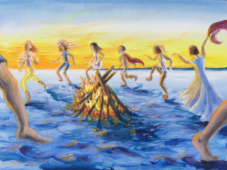 Beach party I captured on canvas from a friends birthday party I attended in the pristine Shoalhaven Heads NSW Australia Its the tip end of the untouched Seven Mile Beach.