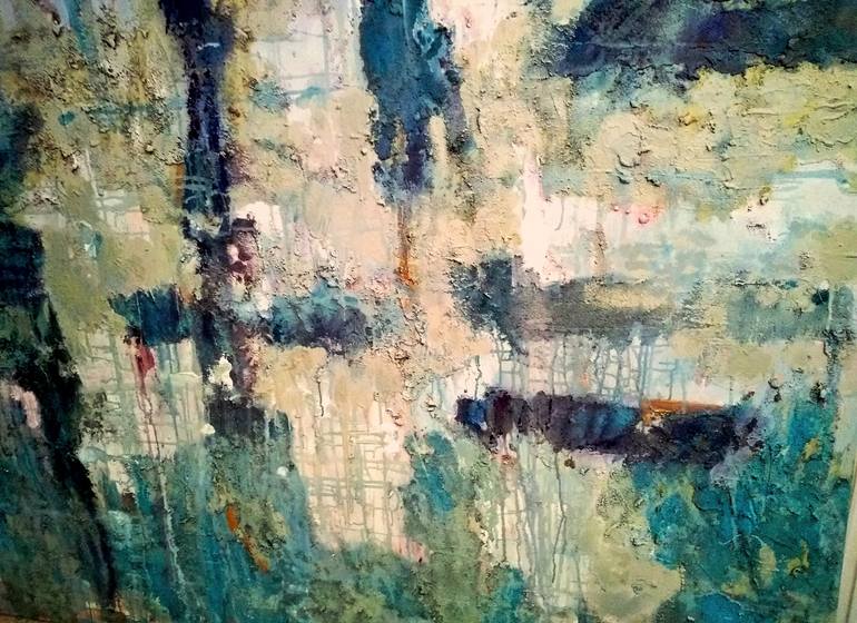 Beach Series II is a heavily textured painting on canvas that incorporates beach sand from Florida beaches. The painting is inspired by the soft colors of the sand, sky and sea that are present in Coastal environments and the beauty and power of nature.
