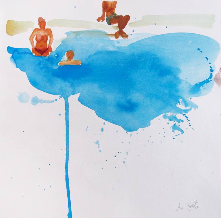 Artwork inspired by the summer beach atmosphere at the Adriatic sea. Watercolor on paper painted with sea water.