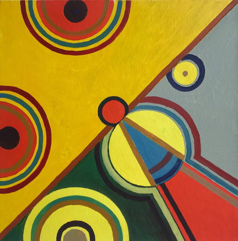 My color choices are intuitive and connect to my basis: abstract expression. Here I use geometric shapes and their repetition to signify rhythm. Rhythm leads to movement. Therefore, at first glance, the viewer notices the geometric shapes and colors, but a second deeper look allows the viewer to con...