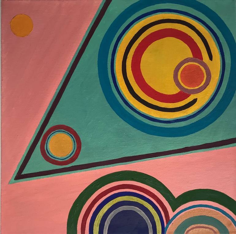 My color choices are intuitive and connect to my basis: abstract expression. Here I use geometric shapes and their repetition to signify rhythm. Rhythm leads to movement. Therefore, at first glance, the viewer notices the geometric shapes and colors, but a second deeper look allows the viewer to con...
