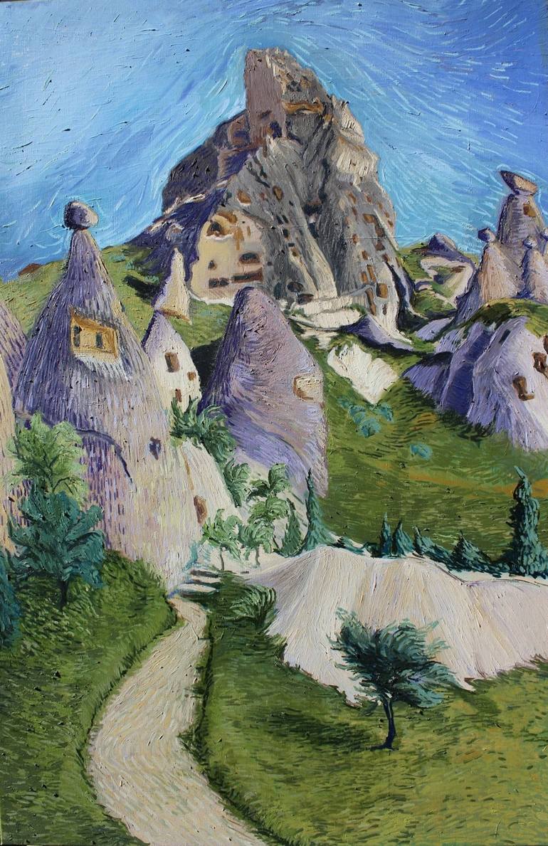 My interest in the steppe climate is directed to draw landscapes like this, sometimes the texture of dry soil and unique architectures shaped by the centuries, this picture is an image from Cappadocia, I think that people of 3. and 4. years lived here, excited me. Today I'm bored with the architectu...