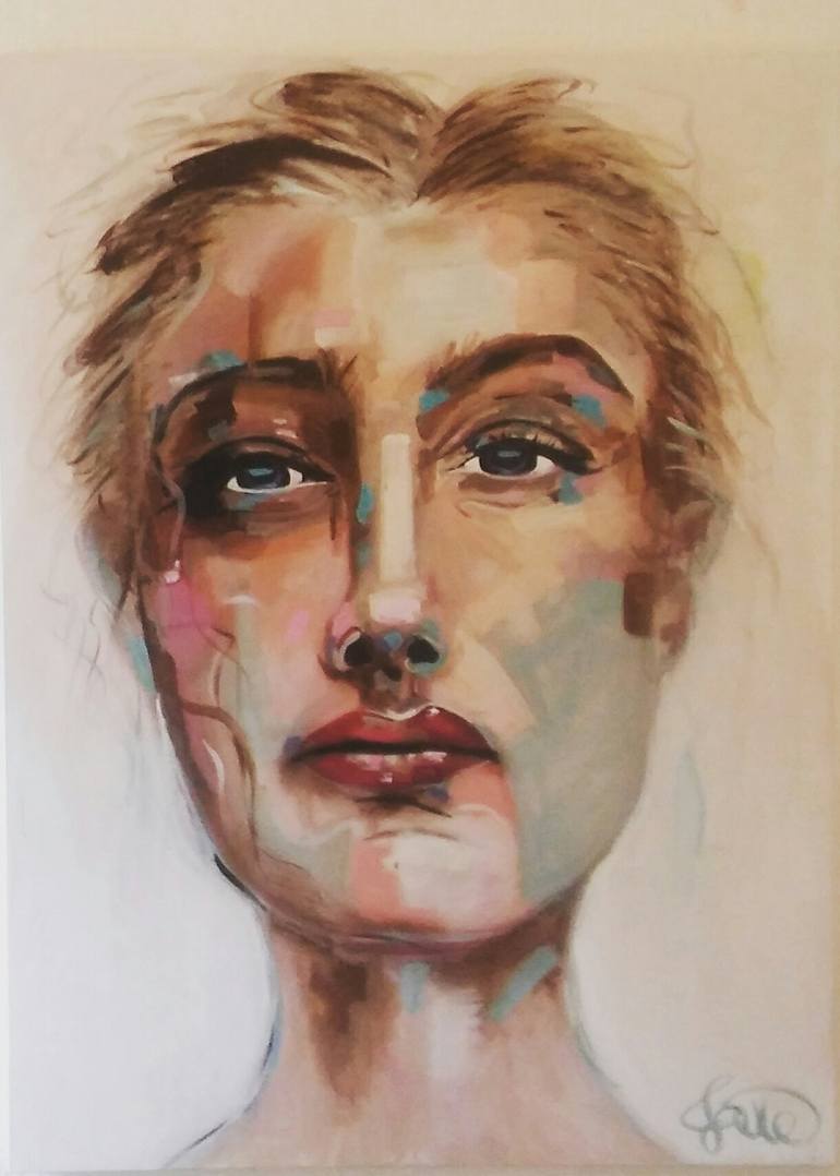 I love painting faces! I was a professional make up artist for 25 years , so faces come very natural to me. I love shading in color, so much positive energy in this piece! Colors are so powerful! Human! Love! Woman are powerful creatures! It's amazing what we do!