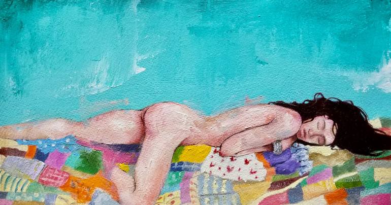 "Beauty Sleeps", 6x11 inches, oil on paper. Reclining female nude on sealed watercolor paper. Framed.