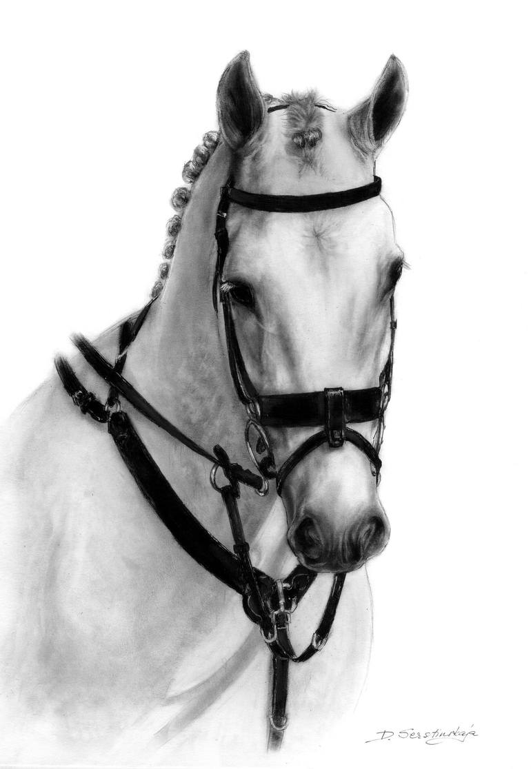 Oil painting on paper of beautiful horse "Beauty". Dry brush technique