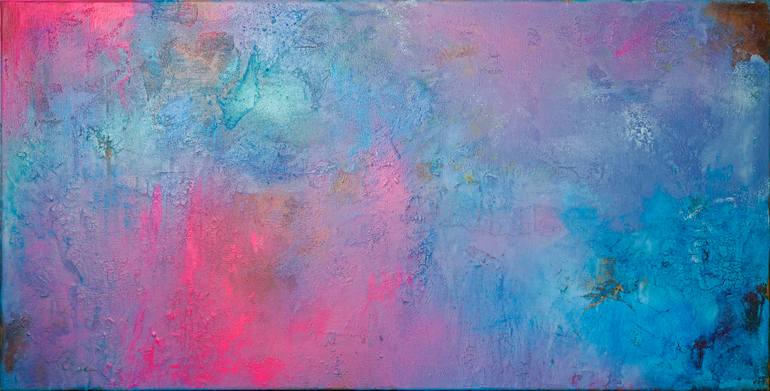 In this painting I have created a very fine structure with color transitions. It has bright, saturated colors on the one hand, but also very soft tones on the other. It looks to me like a distant galaxy or a surreal colored nebula and creates a very calming mood for me, but on the other hand it is a...