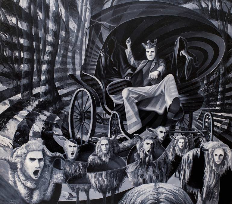 "We know quite well that we do not have the right to say everything, that we cannot speak of just anything in any circumstances whatever, and that not everyone has the right to speak of anything whatever." Every surrealist painter challenges these rules outlined by Michael Foucault. He is not afraid for his work to be caught up in madness and irrationality. Mixing reality in unexpected proportions, a surrealist artist fights for the most important right – the freedom to address the important issues regardless of the circumstances. The works of Sviatoslav Bazyuk reveal that context and connections between different phenomena have no boundaries. The interpretations are limitless. This freedom leads to full immersion in the subject. Spirals and funnels pave the way to the inner world of themes, stories, and images. Reflection becomes infinite - like Alice’s fall down the rabbit hole. The artist encourages the leap into disorder, which, in turn, opens up a world of new interpretations and metaphors. In this inner world the viewer should be prepared for unexpected encounters when a mysterious stranger may end up either an enemy or an accomplice. Neither Bosch’s phantasmagoria nor Dali’s hallucinations, these works whimsically but uniquely transform reality through the prism of imagination. Interpretations are not limited by the imagination of the artist – the audience also actively participates in the creation of the meanings. Meanwhile, the artist continues to create new discourses and portals that lead into new depths. the following is a verse about his autobiography written by Sviatoslav. Born at the gates of socialism Caring for the blind dream of communism, Forgetting school years in oblivion Student of Crimea with the will to freedom, Closed in the routine of socialist realism, He crept up to the light of surrealism From the age of sixteen he was wanted I was looking for a man going to the world - Where there are no borders Where the static in the fog dreams of something Where colors laugh and come to life Where the world is slipping into the chaos of Lines Where the parallels intersect.