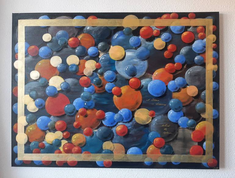 A dream is dreamed behind the spheres... Spheres have been part of my painting for many years. Their calming effect, both when painting and when looking at them, allows the viewer to continually discover new ones.