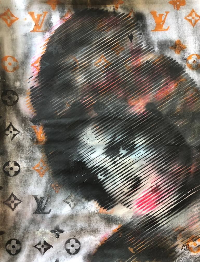 Spray paint and stencil on a collage of old magazines pages and reused/recycled paper, 42,0x33,0cm, 2019. * One of a kind, original art piece crafted and signed on its back by the artist. * In this piece I used recycled/reused paper, in this way some ripples may occur on the surface of the work, w...
