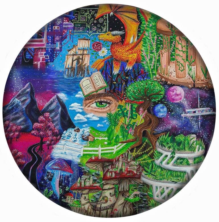 This piece is a portal into my mind, where dreams and reality merge into a symphony of color and imagination. Each element invites to pause, reflect, and wander through a world where the impossible feels tangible. It seeks to evoke a sense of wonder—a dreamlike haze that leaves one dazed, amazed, a...