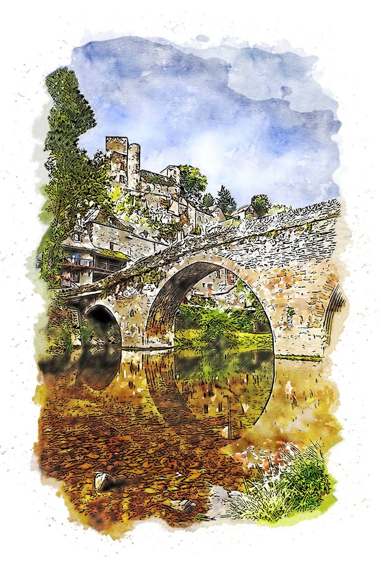 Belcastel in the Aveyron Département, France Painting