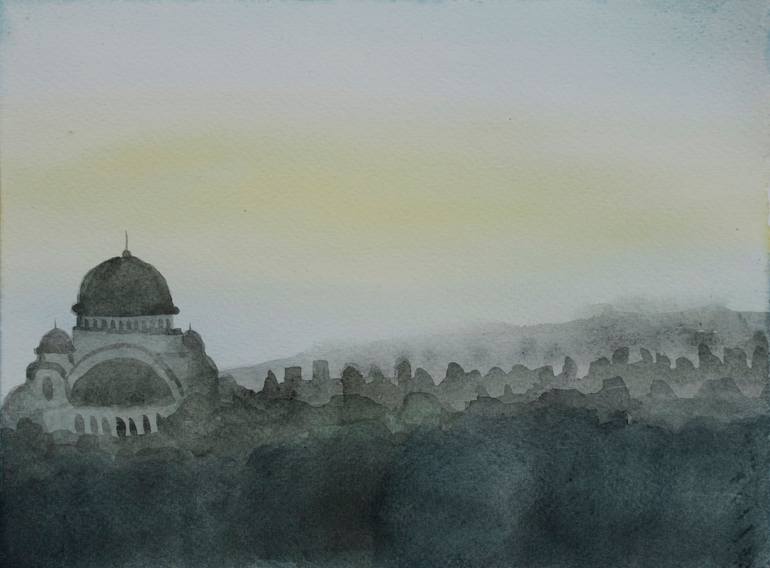 "Belgrade in the Haze" belongs to my newest series of watercolors. Panoramic images of cityscapes in the haze inspire it. Although the fog is usually created by air pollution, it is visually appealing and draws me to paint after such photographs. It is a minimalistic depiction of the panorama of B...