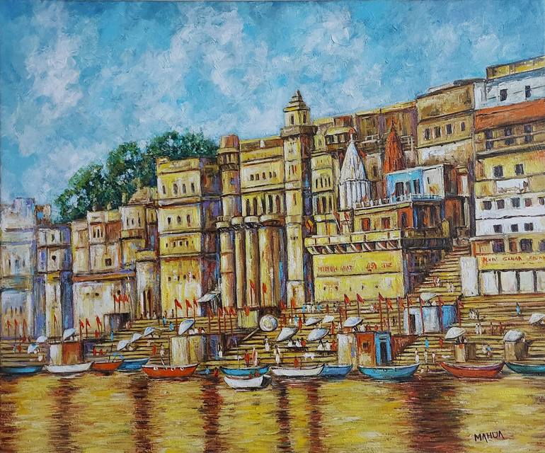 Benaras Ghat - Oil on Stretched Canvas Painting