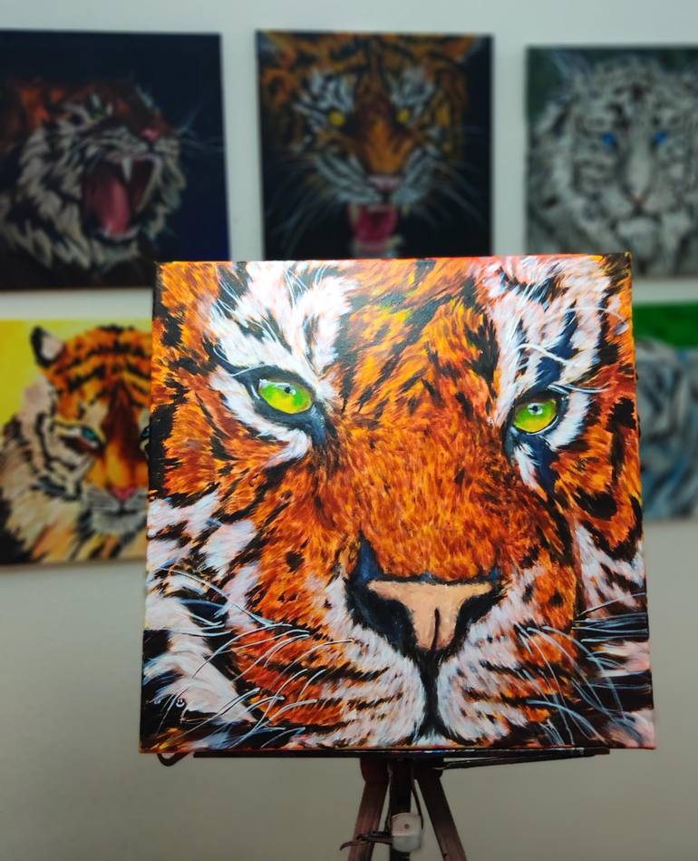 This tiger is the captain of my army of tigers, he represents the majesty, wisdom and temperance of a leader . Its a Handmade painting, painted on a canvas with acrylic paint. It is a unique product and any imperfection is not considered a defect, but rather a peculiarity of the handmade process.