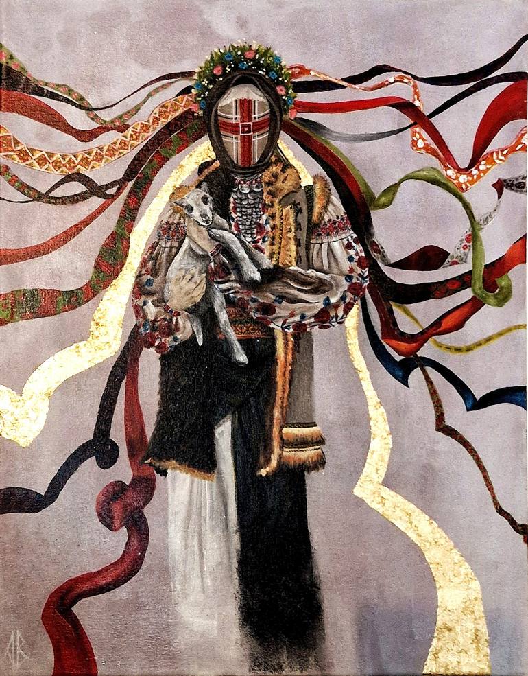 "Berehynia" is a symbolic image of a woman as a protector in traditional Ukrainian attire. She holds a young goat in her arms, a symbol of care and gentleness. Her face is represented by a motanka doll — a ritual faceless figure that embodies sacred feminine energy. Her head is crowned with colorful...