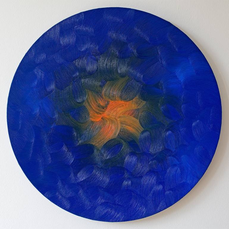 A red glow shining out of the deepest cosmic night? The painting cycle entitled „Between Center and Periphery“ explores the contrast and the interaction between centrifugal and centripetal forces on round canvases. The way of working resembles a dance around the painting lying on a table: in swingin...