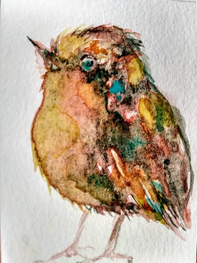 Original watercolor painting on unmounted paper, yellow bird art