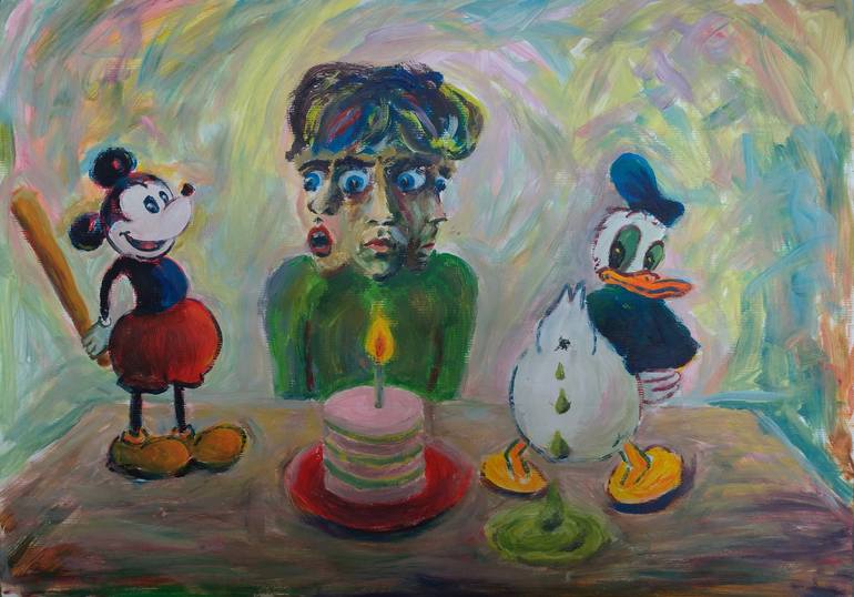 My photos of the paintings are taken under neon light and before drying, thus colors may be slightly different in other lights, or can be darker a bit!
