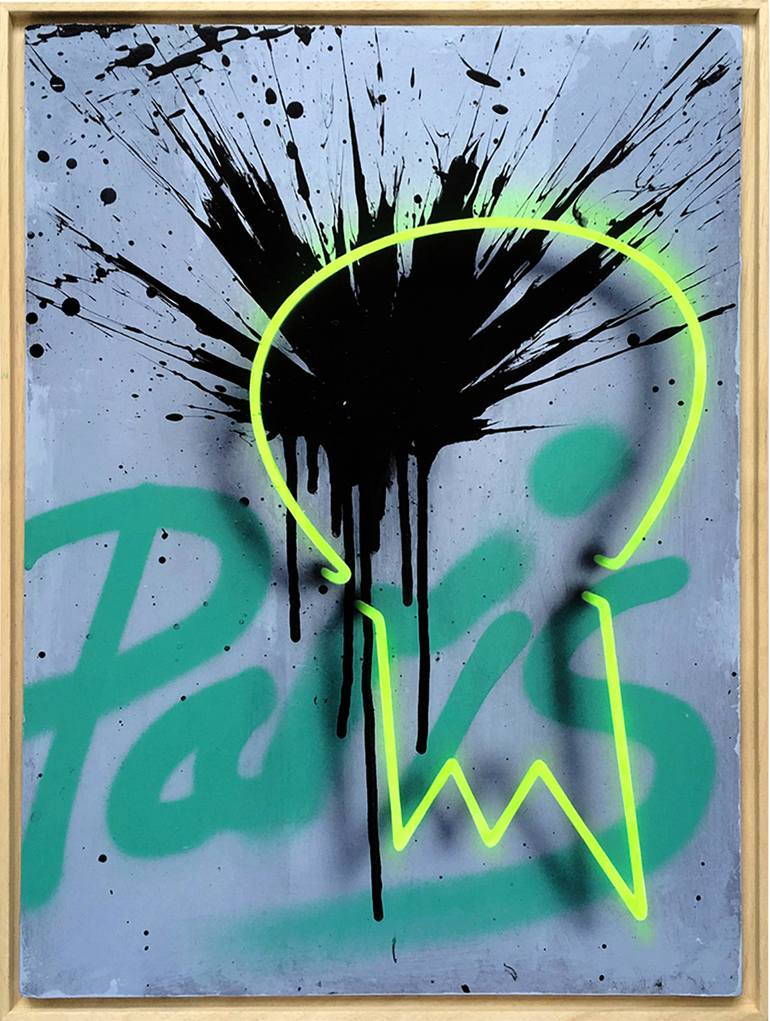 Mike Edwards is an established artist well known for his portraits made of text. New bodies of work show Edwards evolving from his recognised style, developing an increasingly sophisticated approach to painting. Some works retain a typographic aesthetic, whilst others incorporate painted neon, abstract expressionism and traditional landscape painting to produce a complex and energetic dialogue between the old and the new. Edwards has exhibited extensively, including three solo shows, and his work is in collections around the world, including those of Sir Bradley Wiggins, Imelda May, and the late publisher Felix Dennis. David Bowie signed Edwards’ unique typographic portrait of Aladdin Sane - which went on to raise phenomenal funds for charity at auction. His portrait of Lord Attenborough is on permanent display at The Attenborough Centre for Creative Arts, University of Sussex. Edwards' work was also included in Gilles Peterson's book 'Broadcasting in a Pandemic', a cultural documentation of a year in lockdown. An exceptional painter, Edwards started out as a professional artisan artist before developing his own body of work. Projects have included a stage set for rock band Blur and producing commissioned artworks for Bacardi, Budweiser and Urban Outfitters. Edwards continues to push boundaries in new paintings currently in progress in his studio in central Brighton. ARTIST STATEMENT: As in nature, I’m looking for a fine balance in my paintings. My work is in a constant state of flux, and continues to evolve through a variety of styles and experiments. My paintings consider space, both pictorial and illusionary, light, both natural and man-made, and energy, both painterly and contained. I feel that paintings, with their physicality and their physical presence are the closest thing humans have made to a natural element that can communicate the intangible or the metaphysical. That an emotional or cerebral reaction in the viewer can be caused by simply looking at a painting is extraordinary, and is key to why I choose this medium. I’m fascinated how a painting can retain the energy of its creation and transmit it back to the viewer, whether it’s by expressive marks or brushstrokes or whether it's in controlled geometric shapes. I’m a fan of optical magic, from the earliest examples of tromp l’oeil in Greek murals, through to contemporary street art.