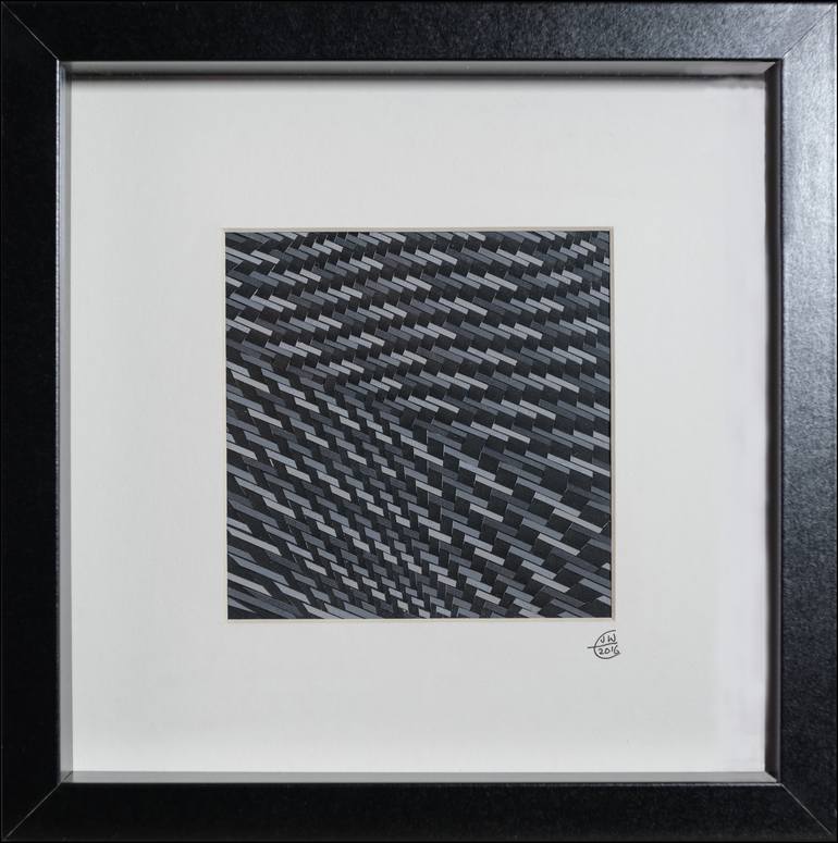 Black Grey Marge consists of sheets of painted paper which are cut and woven together to create one final image, with the weaving making a pattern across the surface. My influences again in this piece are Bridget Riley and Escher. This piece is framed (size 25.5cm x 25.5cm x 4.5cm) and is ready to h...