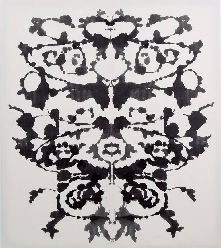 "Black Mirroring #8" is a large abstract painting, part of a series inspired by Rorschach images. The artwork is painted with acrylic on raw, unprimed cotton canvas, allowing the pigments to sink deeply into the fabric. In some areas, the colors granulate, creating a translucent yet vibrant effect, ...