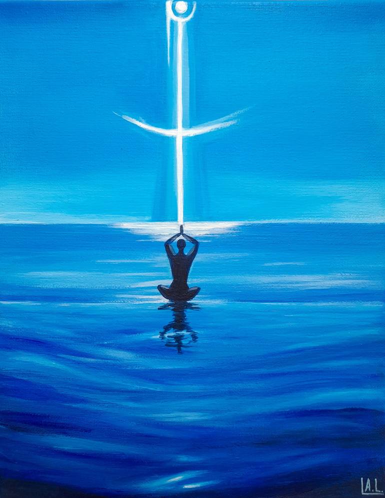 This painting reflects how to clear our minds, we connect with the source of light with God and receive the blessing. Clean air, water and love this is all you need to live happily ever after.