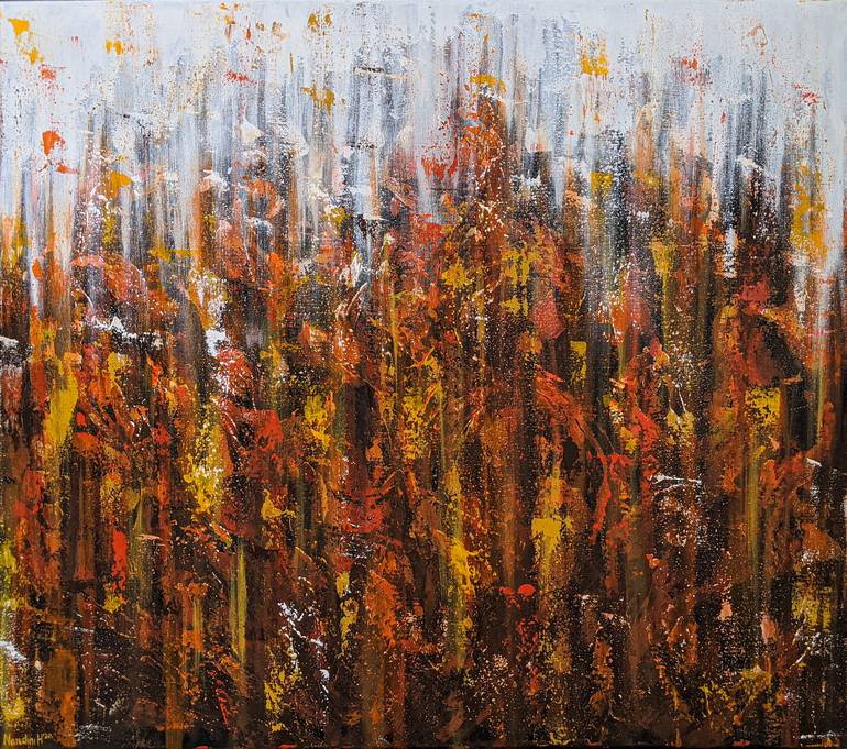 This work was inspired by my self-development process, as during this time I have felt like I have become a new me (a phoenix rising from the flames!). I began with the idea of rebirth and new beginnings. I used palette knives to enhance the random and abstract shapes that flames have, and aimed for...