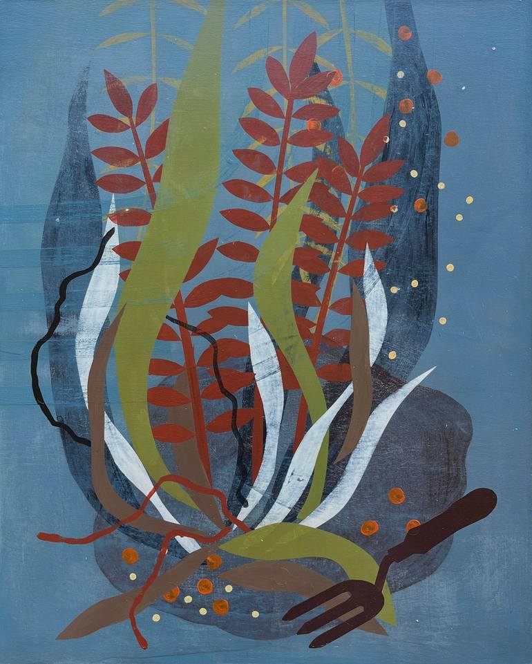 My painting studio is adjacent to an urban farm. Watching the progress of the plants, both the intentional and the weeds, has become a fundamental part of my day to day life and something rich in metaphor. Acrylic and mixed media on wood panel, ready to hang, no frame required.