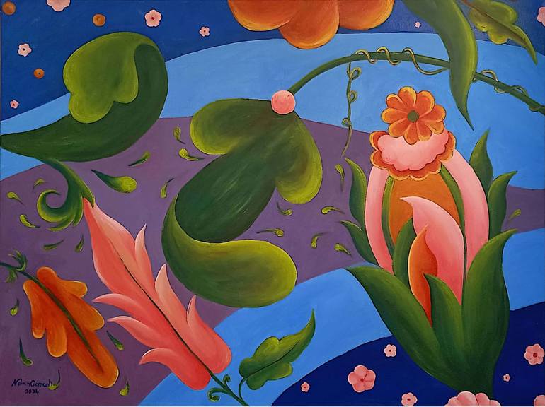 - My inspiration is the flowers and plants from the Ottoman era with their diverse shapes, colors and movements, but I painted them in a different and modern style for parts of them and with a very special launch. - I hope that the recipient will feel the beauty and movement of those leaves of flow...