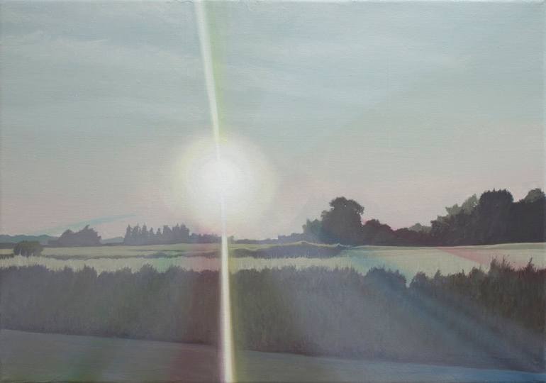 A painting of the sun, at the end of the day while out cycling. I think this is somewhere in Devon. Trying to capture the dream atmosphere that exists out in the summer fields, where everything is governed by the sun. The title is from a Radiohead song. The Bloom Jamie xx Rework Part 3 version has b...