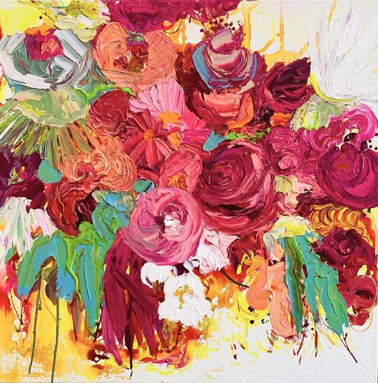 KERRY BRUCE ART - STUNNING ORIGINAL CONTEMPORARY ART - Statement artworks for Interior Designers, Home Owners, Stylists and Decorating Professionals that will give your project that finishing touch. Based on the pristine South Coast of NSW, the artist and director of Gerringong’s Fern Street Gallery finds inspiration in her surroundings, painting from a lofty, light-filled seaside studio. The space is home not just to her solo work, but also to the workshops she regularly runs, where she teaches small groups her signature style involving bold pigment (we’re talking 50 shades of pink!), sensuous application of paint – often with a palette knife – and an all-pervasive sense of joy. Approaching two decades as a full-time artist, her subjects have included various subjects from still life to the human figure, but it is flowers she repeatedly returns to. “I love to abstract my impression of the floral, always working from a still life of blooms,” she says. In these works, colour is intensified, and texture is accentuated. “Shapes and movement are what I am after,” says Kerry, and there’s no doubt she succeeds, with her flowers imbued with such energy and exuberance that they appear ready to burst forth from vases only just containing them. “Each artwork is a unique creation derived from an intuitive practice that spontaneously evolves from one mark to the next,” says the artist. Exhibiting in both solo and group exhibitions throughout Sydney, regional NSW, Melbourne and London, fortunately, she shows no signs of tiring of her subject matter. “No matter how many times you paint the vase of flowers in situ, a new interpretation of that beauty evolves.” Be it a pretty posy, fecund foliage or a beautiful bouquet, Kerry Bruce’s sumptuous paintings of flowers take on a life of their own.