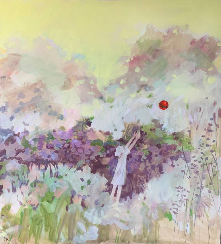 You can find more of my paintings here: My instagram: Title: "Blooming garden" Size: 48 x 44 inches Size: 120 x 110 cm Type: Original watercolor Sold unframed and shipped in paper art tube for security on delivery.