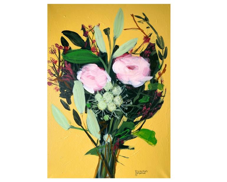 Soft Pink Beautiful Blousey Roses. Recently finished, this painting came from a stunning arrangement containing lilies bay leaves, and eryngium. It is large at 59.4 x 84.1cm on a deep box canvas at 4m. (A1 Portrait) Lovely to hang anywhere in your home - the strong yellow overtones will bring the...