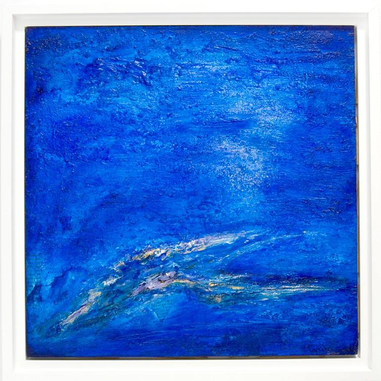 Title: Blue Aura Medium: Acrylic Mixed Media on Wood Panel, Framed. Signed in front, Signed, dated, and titled on the back. Framed Size: 34.5 × 34.5 × 3.5 cm / 13.6 × 13.6 × 1.25 inch (unframed art size): 30.5 × 30.5 cm / 12x12 inch * Framed with the white wooden floater frame (Made in USA) *...