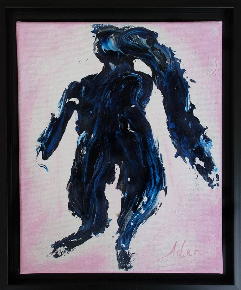 image updated 120124 - Another of my figure variations, this one, Blue Dancer 2023, is mostly if not all brush painted - vs line work. My intent was for dance like movement via thick mixes of pigment and heavy medium, with a contrasting pink softer texture glowing around him. Frankly I didn't know ...