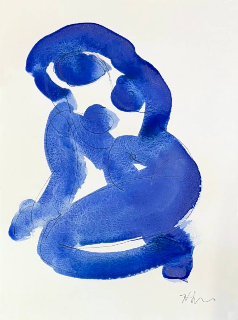 Blue Gesture is an expressive study of the female form, capturing elegance and movement in a single, fluid pose. Executed in fluid washes of blue watercolor, the piece reveals both spontaneity and refinement through its gestural lines. Painted on archival Arches watercolor paper, this work comes unf...