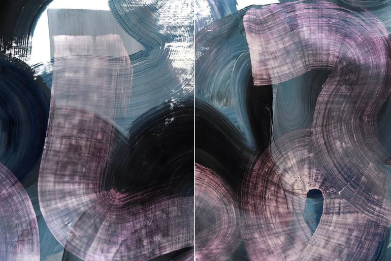 Traveling on the purple blue highway in the vast universe. Acrylic with iridescent color brush marks on acid-free paper. Diptych, each piece is 30 x 22 in. Altogether is 30 x 44 inches. Can be displayed together or separately. Ready to frame.